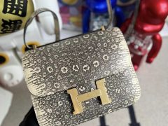 Hermes Constance 19cm 新颜色 M3墨水蓝 Blue Encre 亮面方块 美洲鳄鱼