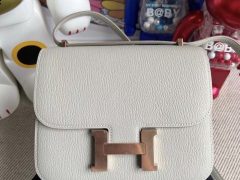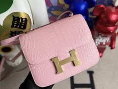 Hermes Constance 19cm 新颜色 M3墨水蓝 Blue Encre 亮面方块 美洲鳄鱼