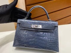 Hermes MiniKelly Pochette 22 P3北方蓝Blue de nord Epsom 银扣