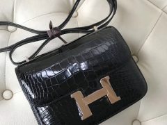 爱马仕康斯坦斯包 Hermes Constance 24 CK89黑色 雾面方块美洲鳄鱼皮 蜥蜴扣