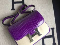 爱马仕康康空姐包价格尺寸图片 Hermes Constance 24cm 5L极度紫 梦幻紫 包包 亮面方块 美洲鳄鱼 Shiny alligator crocodile 完美品相 金扣