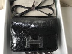 爱马仕蜥蜴皮 空姐康康包价格Hermes Constance 23蜥蜴皮CK89黑色银扣