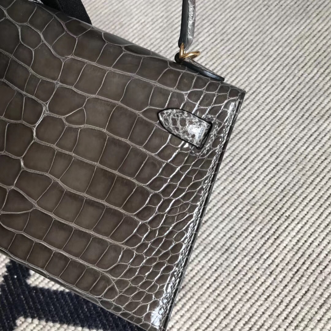 爱马仕迷你凯莉 Hermes MiniKelly 二代 20cm 8P铅笔灰 亮面方块美洲鳄鱼 金扣