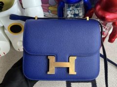 Hermes Constance 19cm 新颜色 M3墨水蓝 Blue Encre 亮面方块 美洲鳄鱼