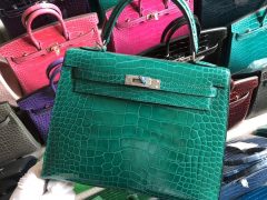 美国德州爱马仕鳄鱼皮kelly 爱马仕凯莉包鳄鱼皮价格 Dezhou USA Hermes Kelly 25cm O6帝王绿 Vert Jade 亮面两点 尼罗鳄鱼 Shiny Nilo Crocodile 全手工蜜蜡线缝 in stock