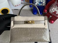 Dhabi Hermes MiniKelly 二代 Matte Alligator Crocodile 8L Beton 奶油白