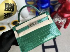 Dhabi Hermes MiniKelly 二代 Matte Alligator Crocodile 8L Beton 奶油白
