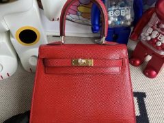 Singapore Hermes MiniKelly2代 Epsom牛皮 K1 石榴红 Rouge Grenat