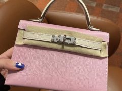 爱马仕包包官网 Hermes MiniKelly二代 9i玉兰粉Epsom牛皮 图片尺寸 19cm