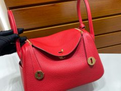 Hermès Mini Lindy taurillon Clemence 0G Rouge Sellier Gold hardware