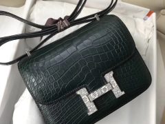 Hermes Constance 19cm 新颜色 M3墨水蓝 Blue Encre 亮面方块 美洲鳄鱼