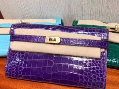 爱马仕中国内地第二家专卖店 爱马仕上海恒隆广场专卖店怎么样 Hermes Kelly Wallet 6Q翡翠绿 Vert emeraude 亮面方块 美洲鳄鱼 Shiny Alligator Crocodile 全手工蜡线缝