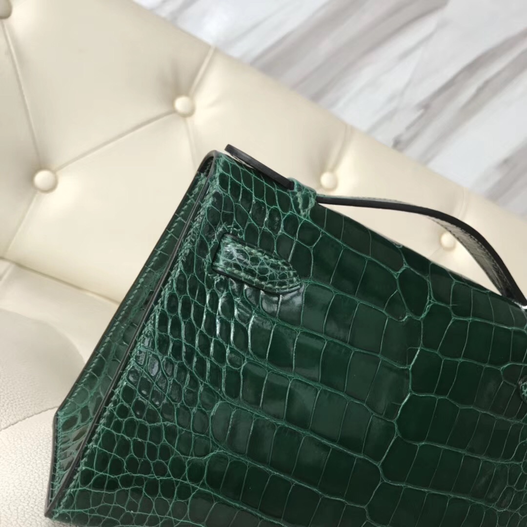 爱马仕凯莉包迷你一代 Hermes MiniKelly 1代 CK67祖母绿 Shiny alligator crocodile 亮面方块 美洲鳄鱼皮 金扣 完美品相 全手工蜡线缝制