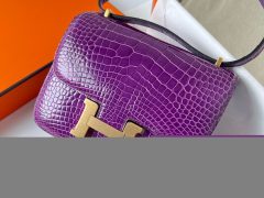 Britain Hermès Constance 18cm Shiny Alligator Crocodile CC95 Braise 法拉利红 Silver Hardware