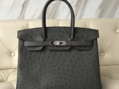 爱马仕Hermes铂金包 Birkin 30cm 3C羊毛白 南非鸵鸟皮 全手工缝 银扣