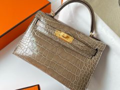 Hermès Kelly 20 Mini II Sellier Shiny alligator crocodile CK18 Etoupe 大象灰 Silver Hardware