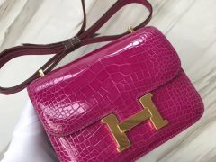 Hermes Constance 19cm 新颜色 M3墨水蓝 Blue Encre 亮面方块 美洲鳄鱼