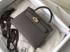 专柜迷你爱马仕凯莉包多少钱 Hermes MiniKelly 2代 4Z海鸥灰 Epsom 御用手掌纹皮 顶级工艺 全手工蜡线缝 金扣 银扣