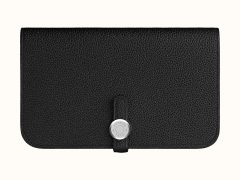 Togo calfskin 多哥小牛皮钱包,带羊皮衬里,5个信用卡插槽,3个口袋,1个可拆卸的零钱钱包,带拉链和镀钯Clou de Selle封口