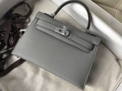爱马仕凯莉包迷你19 Hermes MiniKelly 2代 8F锡器灰 Epsom 御用手掌纹 顶级工艺 全手工蜡线缝 金扣 银扣