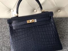 爱马仕kelly鳄鱼多少钱 California USA Hermes Kelly 25cm CK76深海蓝 Blue Indigo