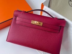 Hermes MiniKelly Pochette 22cm 御用Epsom皮 9J Feu 火焰橙金扣