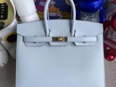 Hermes Birkin 25cm Sellier Epsom 外缝 T0 Blue Brume 雾蓝色 金扣 全手工缝制
