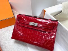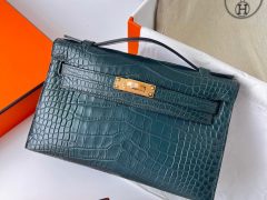 Singapore Hermès Kelly Pochette 22cm Shiny Alligator Crocodile 6H Olive green 橄榄绿 Silver Hardware