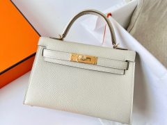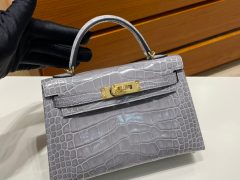 Dhabi Hermes MiniKelly 二代 Matte Alligator Crocodile 8L Beton 奶油白