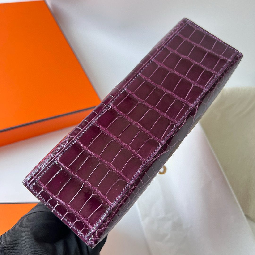 United Arab Emirates Hermès Kelly Pochette Shiny alligator crocodile N5 Cassis 加仑紫 Gold Hardware