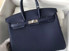 爱马仕官网包包 Hermes 铂金包Birkin 25cm Bag I7琉璃蓝 御用原厂Togo小牛皮 全手工蜜蜡线缝 银扣金属