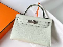 爱马仕凯莉包一代迷你 Hermes MiniKelly 22 7R azur 雾霾蓝 Epsom皮