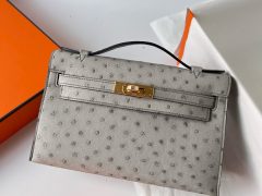Hermes MiniKelly Pochette 22 P3北方蓝Blue de nord Epsom 银扣