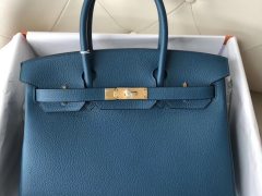 Hermes Birkin 25cm 7W Blue Izmir 伊兹密尔蓝 Shiny porosus crocodile