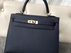 Qatar Doha Hermes Kelly 25cm Epsom CCS4深邃蓝 Deep Blue 全手工蜜蜡线缝制 金扣