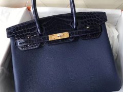 Hermes Birkin 25cm 7W Blue Izmir 伊兹密尔蓝 Shiny porosus crocodile