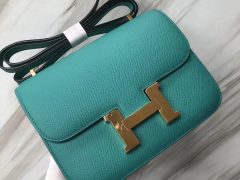Singapore Hermes Constance 19cm 7F孔雀蓝珐琅扣 原厂Epsom皮