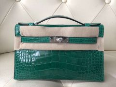 爱马仕包包官网价格 Hermes Mini Kelly 2代 20cm 亮面方块 美洲鳄鱼 Shiny alligator crocodile 6Q翡翠绿 Vert emeraude 银扣