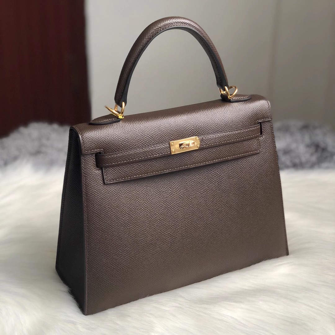 爱马仕凯莉包美国专柜价格 California USA Hermes Kelly 25cm Epsom CC47 chocolate 巧克力色 全手工蜜蜡线缝制 金扣 客定出货