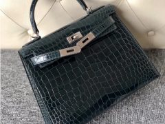 爱马仕包包 鳄鱼皮 Hermes kelly 32 Bag CK89黑色 雾面倒V湾鳄鳄鱼皮金扣