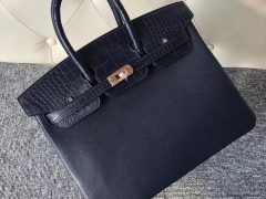 Hermes Birkin 25cm 7W Blue Izmir 伊兹密尔蓝 Shiny porosus crocodile