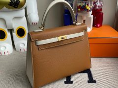 爱马仕包包官网 Hermes Kelly 28cm Epsom I9 Abricot杏黄色 金扣