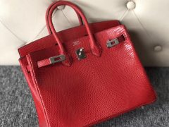 爱马仕台中网站 台北铂金包定制价格及图片 Hermes Birkin 25cm A5 Bouganinviller 杜鹃红 Lizard 御用进口蜥蜴皮 全手工蜜蜡线缝制