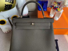 Singapore Hermes Kelly Bag 25 M8瀝青灰/4Z海鷗灰 Epsom皮 銀扣