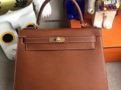 爱马仕包包官网 Hermes Kelly 28cm Epsom I9 Abricot杏黄色 金扣