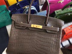 Vietnam Hanoi Hermes Birkin 25cm W0 Vert Bosphore Shiny porosus crocodile