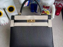 爱马仕凯莉包尺寸25 Australia Hermes Kelly 25cm Hss Epsom S2 Trench 风衣灰 CC89 Noir 黑色 拉丝金扣 客定出