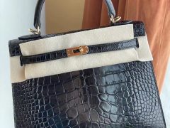 爱马仕kelly鳄鱼多少钱 California USA Hermes Kelly 25cm CK76深海蓝 Blue Indigo