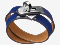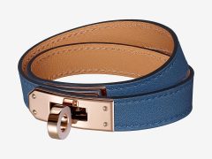 Hermes Kelly Double Tour bracelet CDR2 bleu agate Swift calfskin