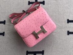 爱马仕康斯坦包 空姐包 小康包 Hermes Constance 23 鸵鸟皮1Q奶昔粉银扣